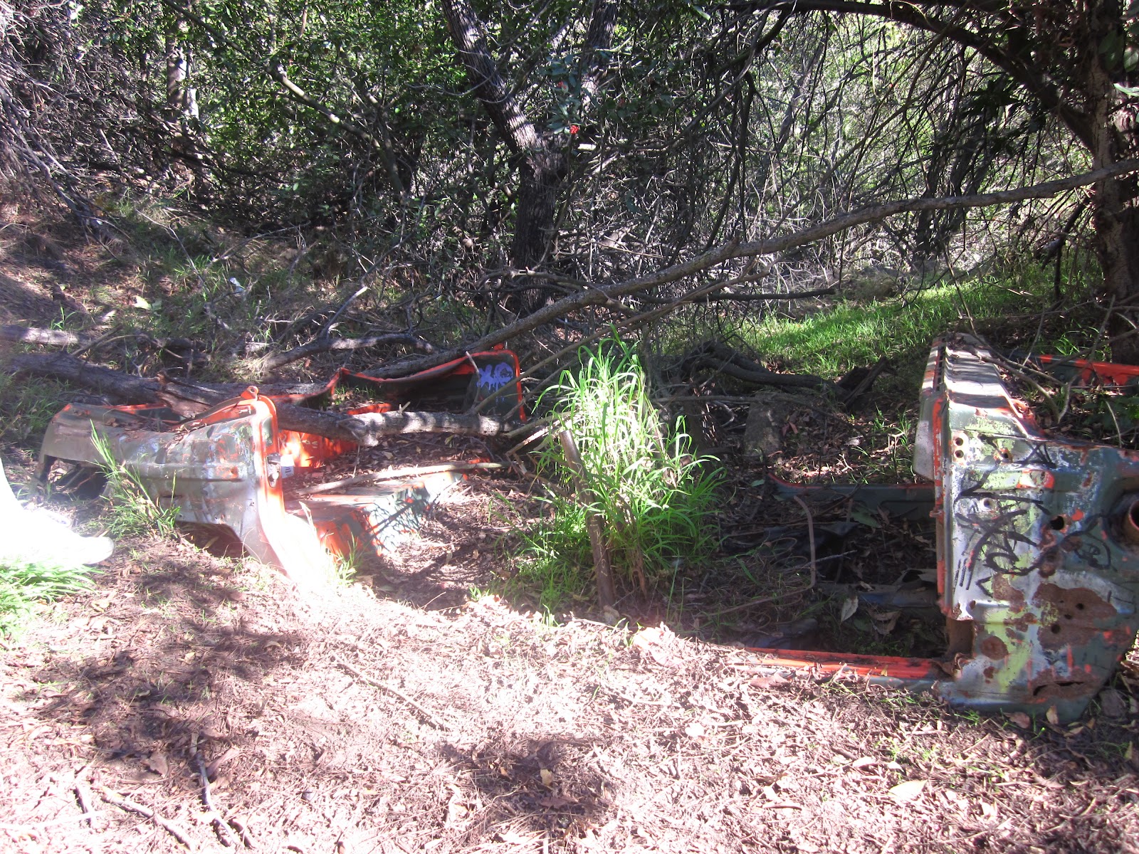 The hike starts in Fryman, but you have to go into a residential area and walk up a cul-de-sac to reach it. It looks like you are heading toward the driveway of a very nice house.About 20 feet in, a sign declares it the Rainforest Trail, and within half a mile, it starts getting secluded and very private.The trail has a lot of switchbacks that kind of loop around. Deep into it, there’s an abandoned car, and you can’t help but wonder, “How did that car get there?” It’s a woody trip, and I’d definitely recommend wearing long pants because there are areas with poison oak and brush.At the top, there’s a scenic overlook with a little workout station, just wood and bars where you can do sit-ups and dips, and benches where you can sit and read or appreciate the panoramic view of the San Fernando Valley. Or go around another way there is a rope swing that is dangerous and fun! Just don’t let go of the rope too early.