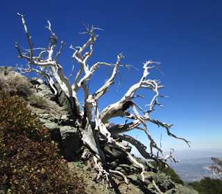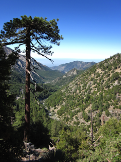 From the new 210 Freeway extension, driving west: In Upland, exit Mountain Ave./Mt. Baldy Exit, Exit 54. Turn right and proceed north on Mountain Ave. Drive 5 miles to Mt. Baldy Road. Turn right (north) and after 5 miles you pass the Angles National Forest Mt. Baldy Visitor Center in Mt. Baldy Village. You can get a Forest Adventure Pass here. Continue a few miles up to Manker Flats. Park at upper end of Manker Flats Campground in one of the dirt areas near the gated Falls Road on the left (if you reach the ski lift parking lot, you’ve gone too far)