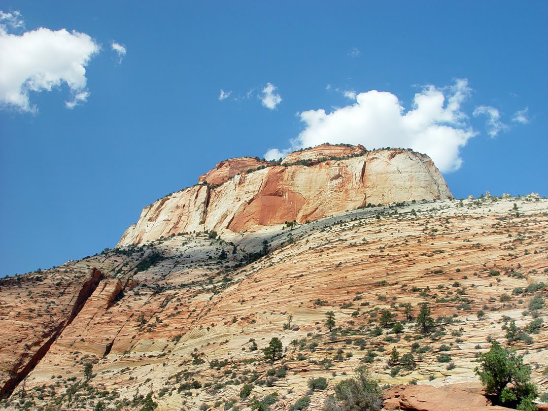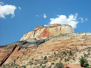 Kayenta TrailThe loop hike follow the Kayenta Trail, a short path that meanders along the low shelf at the foot of Mount Moroni, going from the Emerald Pools, to the Grotto.