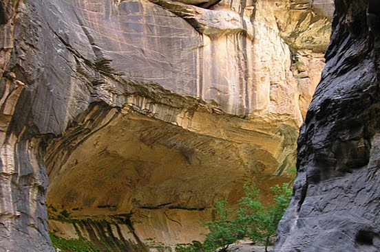 The Great ArchThis is not a true arch, though it will be in a few million years. Just the same, the Great Arch is famously huge and deep. Visible from the highway, the proto-arch is slowly burrowing its way in to the southeast flank of east Temple.