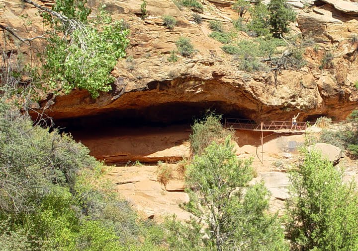 see me.. I am to the right of the great arch on the little bridge that is hanging off the rock.