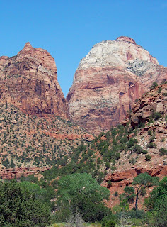 Zion LodgeThe trail heads back down the canyon to the Zion Lodge, a good place to rest, eat and fill water bottles for further exploration.