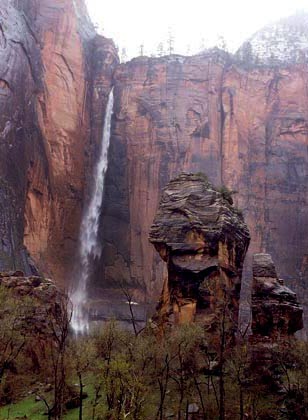 Upper PoolThe Upper Pool is harder to reach than the other two, though worth the extra time that it will take to visit. Waterfalls, fast and powerful during the runoff months, add to the breathtaking backdrop of Zion Canyon.