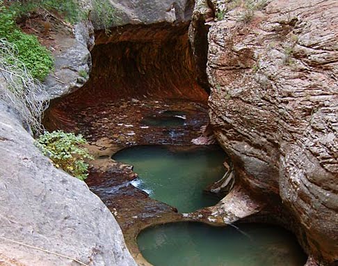 Middle PoolSteeper and longer than the Lower Pool Trail, the trail to the Middle Pools begins in the same spot, but climbs higher up the slope, exploring yet another level of the exquisite Zion waterway.