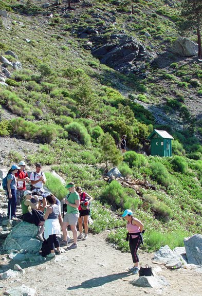 There is a ski hut & Port-a-potty about 1/2 way. That’s a 5.5 miles 4,300 ft. hike. It took about 4-5 hours.