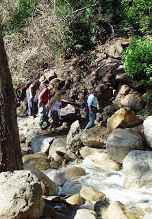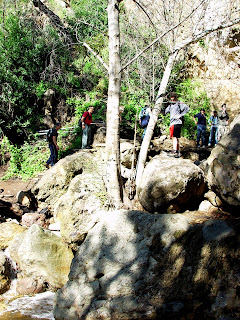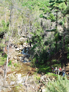 You can carefully scramble up the rocks on an extremely steep trail to get above the waterfall to a number of lovely pools. The return route is a pleasant shady service road that runs parallel to the stream. Good year round hike. Dogs okay, but may not make it if you are going to scramble the falls. The scenery changes completely every .3 miles or so and walking down into the Terrace from the top of the hill feels a little like an Indiana Jones adventure!