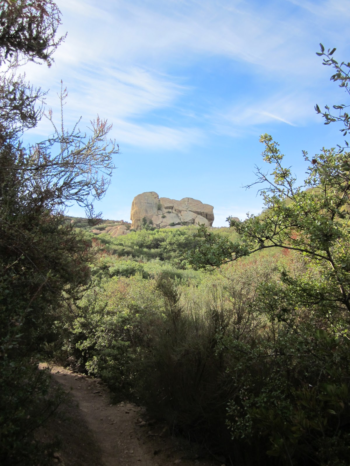 The third leg will take us across Stunt Road to join the Backbone Trail for another 1.1 miles, past some impressive sandstone formations (most likely sporting climbers), then it’s on to Saddle Peak (2,805 ft.), where we’ll take a break and take in the views before returning the way we came.